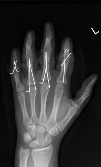 Ridley TJ, Freking W, Erickson LO, Ward CM. Incidence of treatment for infection of buried versus exposed Kirschner wires in phalangeal, metacarpal, and distal radial fractures. J Hand Surg Am 2017;42(7):525-31.