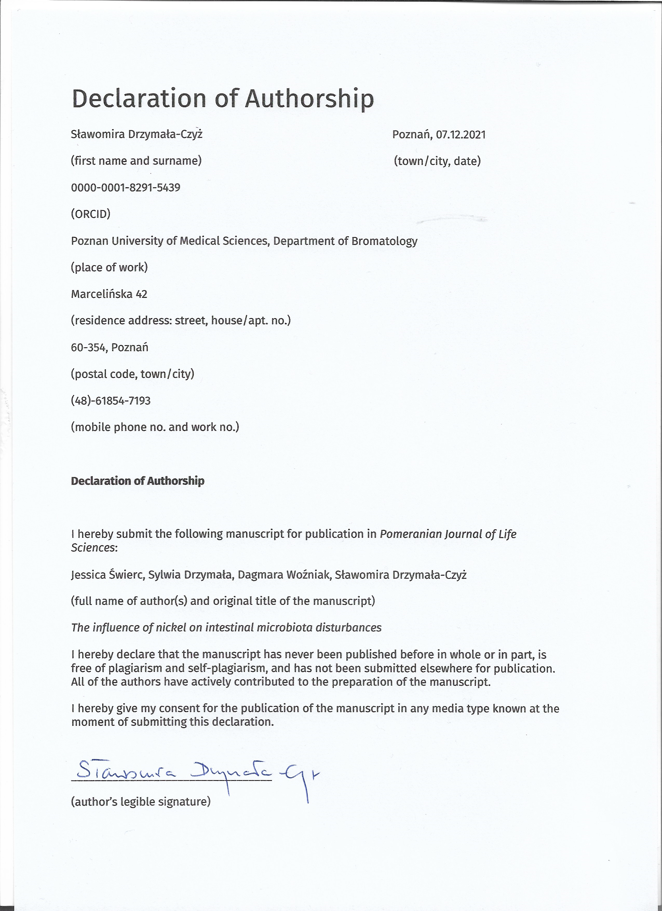 Łańczak A, Choręziak A, Płocka M, Sadowska-Przytocka A, Czarnecka- -Operacz M, Adamski Z, et al. Nickel-free environment – dreams vs. reality: Everyday utilities as a so-urce of nickel and cobalt for patients sensitized to these metals. JMS 2019;88(3):150-5. doi: 10.20883/jms.357.