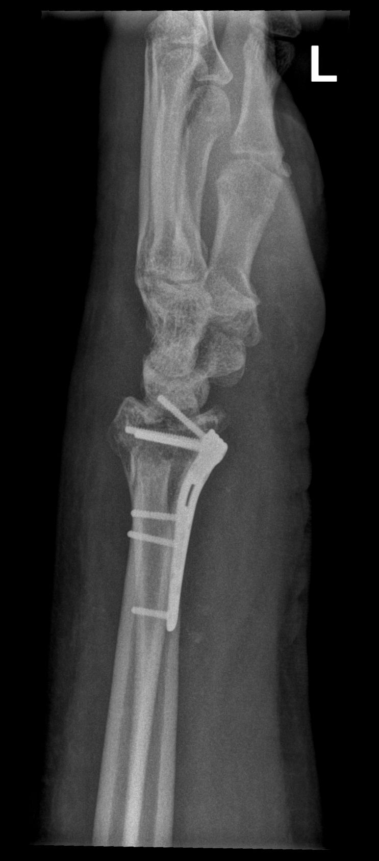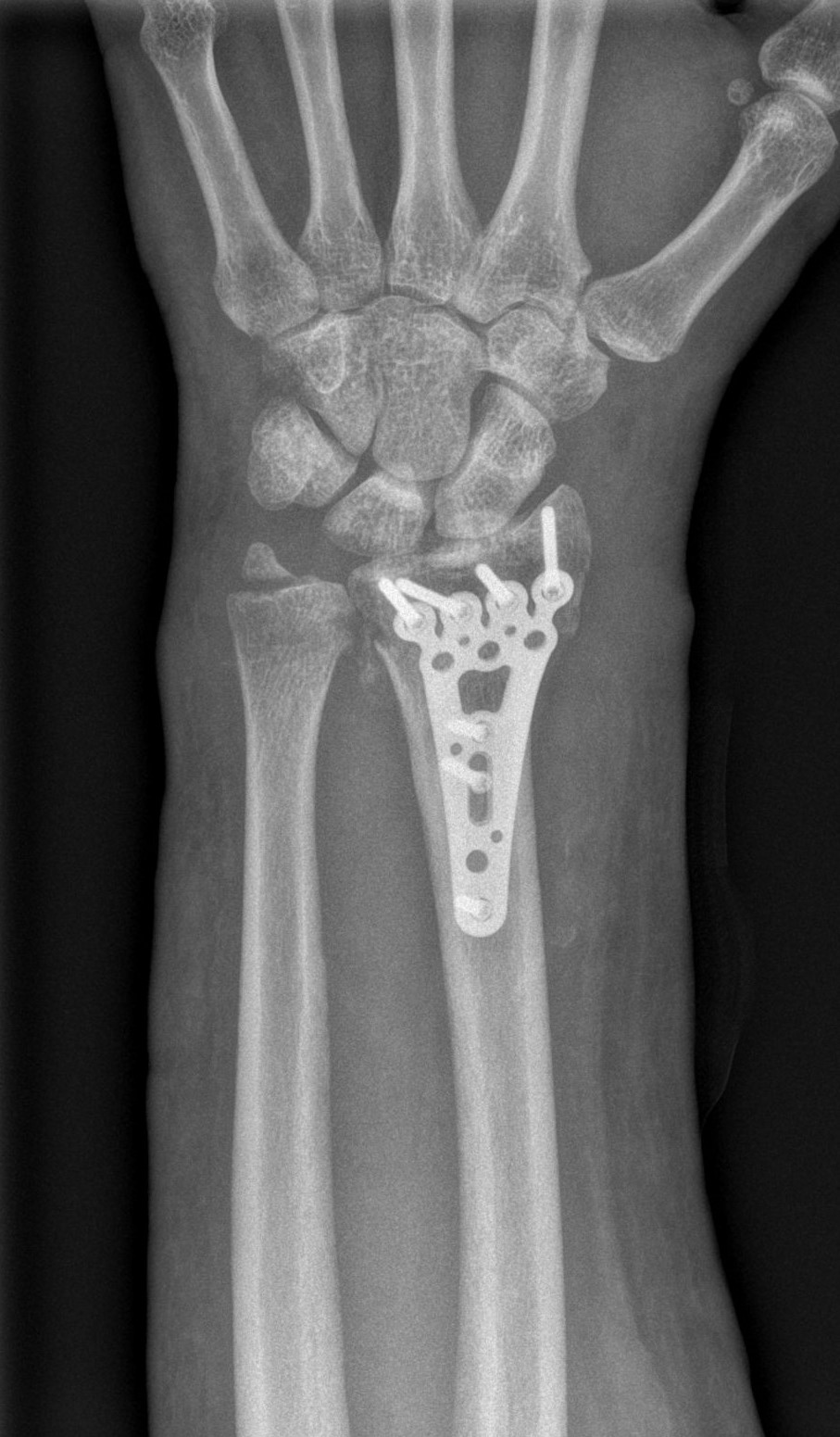 Successful surgery to reduce and fixate with the plate of neglected, displaced fracture of the distal radius