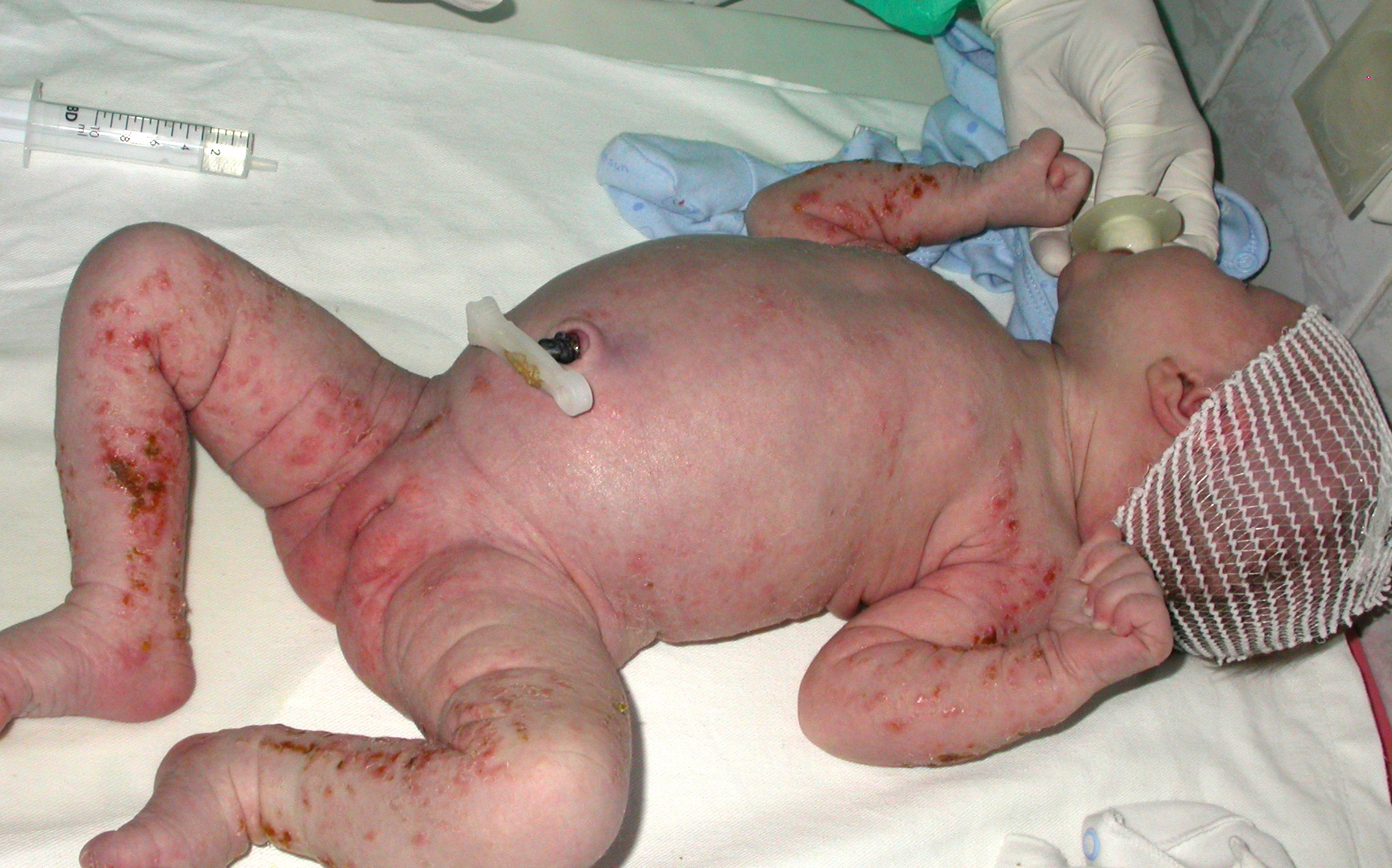 Incontinentia pigmenti is a multi-system disease. Changes occur in tissues and organs derived from the ectoderm and neuroectoderm and may affect the skin and appendages, eyes, central nervous system, skeleton, and teeth. It is usually diagnosed neonatally or during infancy when a characteristic 4-stage evolution of skin lesions materializes – accompanied by abnormalities in other organs. Skin defects can occur in utero, in which case they are visible at birth.